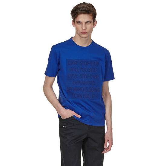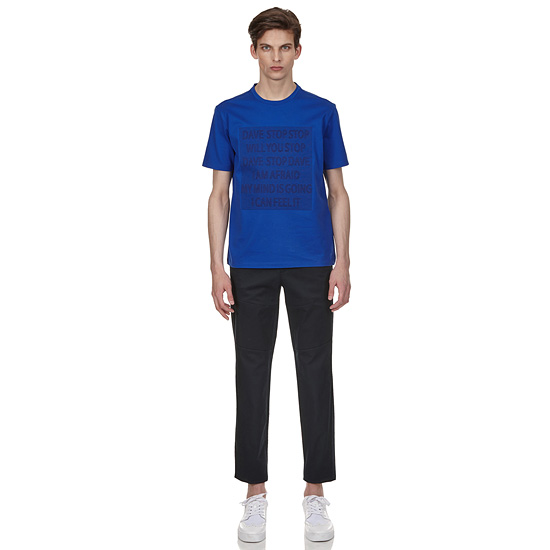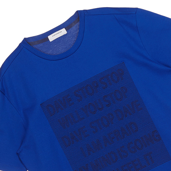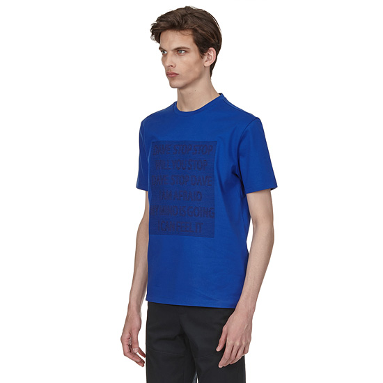 - 유니크한 자수 레터링 박스로 감각저인 남성 티셔츠.