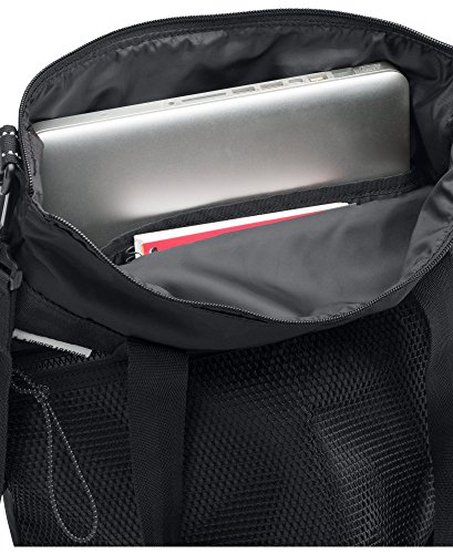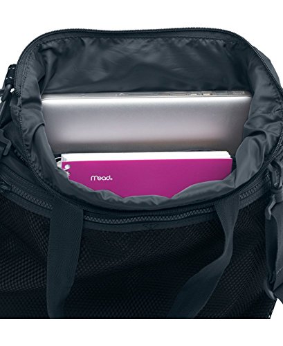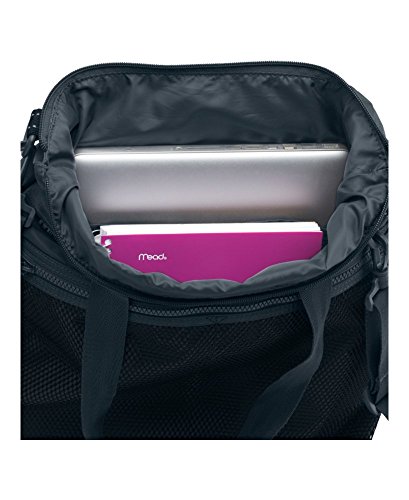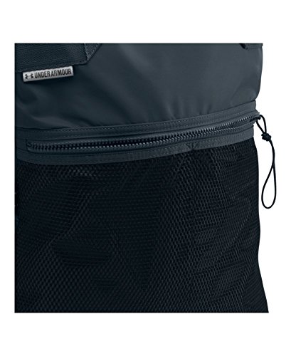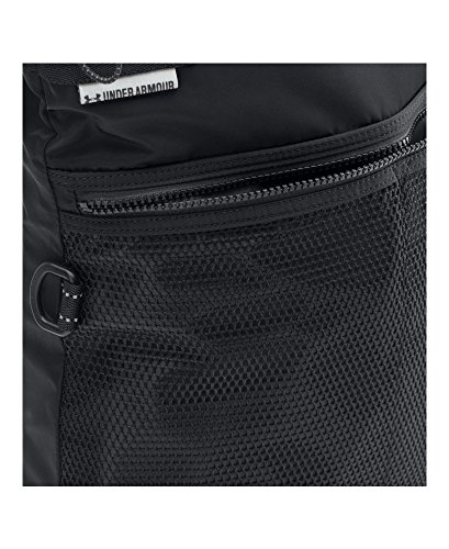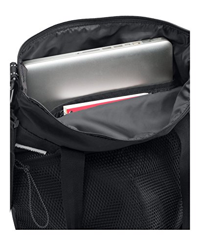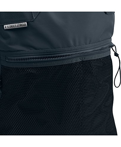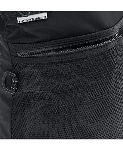 Studio : Under Armour Bags Publisher : Under Armour Bags Binding : Sports Product Description UA storm technology repels water to protect your gear from the elements. Large main compartment with zippered top for easy access. Reflective tab, webbing details zipper pocket bungee pulls. Exterior zippered pocket and interior laptop sleeve. Soft, media pocket fits an iPad air. Adjustable strap comfortable handles provide multiple carrying options. Dimensions: 13.5" x 3.5" x 19". volume: 898 cubic in./14.7 L. 0