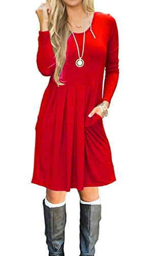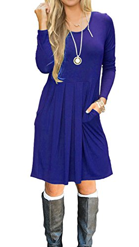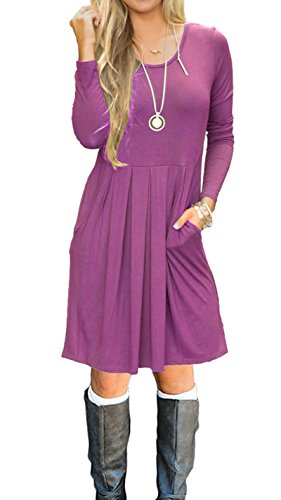 AUSELILY Women's Long Sleeve Casual Loose Swing dress with Pockets.