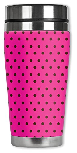 Mugzie 849-MAX "Pink Polka Dots" Stainless Steel Travel Mug with Insulated Wetsuit Cover, 20 oz, Black