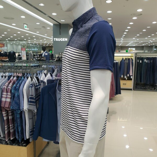 . 써커소재의우븐과 폴리 스판 소재의 이소지니 절개 배색으로 포인트를 준 티셔츠. 슬림한 핏으로 트렌디하고 젊은 코디 연출이 가능합니다