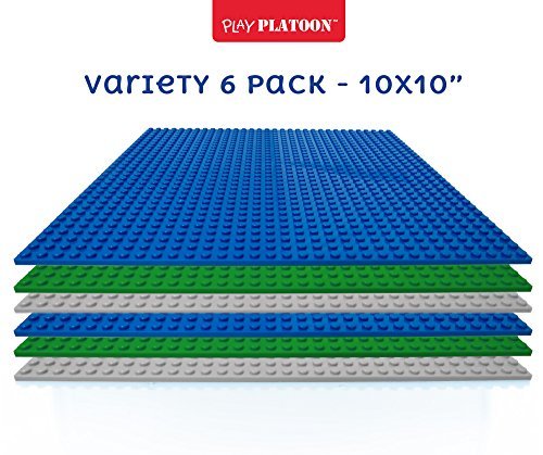 -. Title : Building Bricks - 10" x 10" Baseplate - Variety Pack (6 Pack) Compatible with L.E.G.Os and Duplos