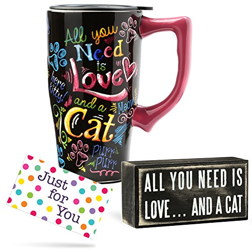 - Spoontiques Colorful All You Need is Love and a Cat 16 oz ceramic travel mug.