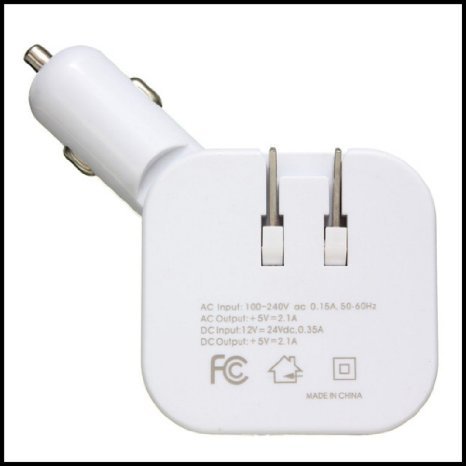 -. Feature : DUAL USB PORTS - Allows you to charge 2 tablets, smart phones, or many other devices simultaneously at full speed while on the road or at home. / 2 DEVICES IN 1 - Fold away plugs allow you to plug this in to any of your house outlets or your car's cigarrette outlet. / SMALL, COMPACT & LIGHT: Add minimal bulk to your car's console. 12 / 24 volt input compatible with all standard cigarette outlets. / Rapid Charging for all Apple iPhones and iPads. Super fast charging for Samsung Andriod Devices, including all Samsung Galaxy models. / Stylish Aluminum 2-in-1 Charging Cord with Lightening Plug,Included