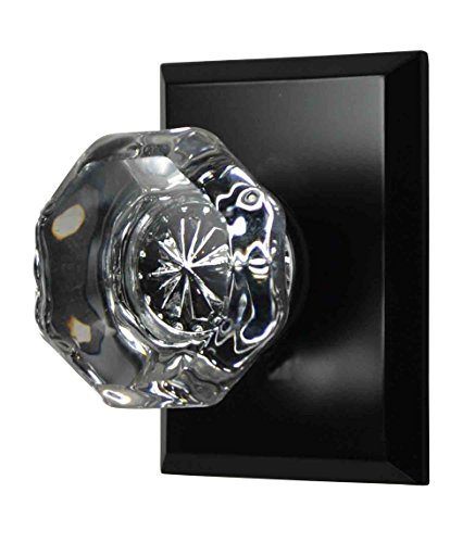 -. Title : Providence Octagon Real Crystal Door Knob Set with Square Rosettes in Oil Rubbed Bronze