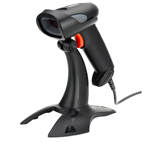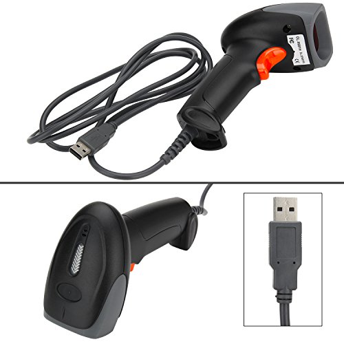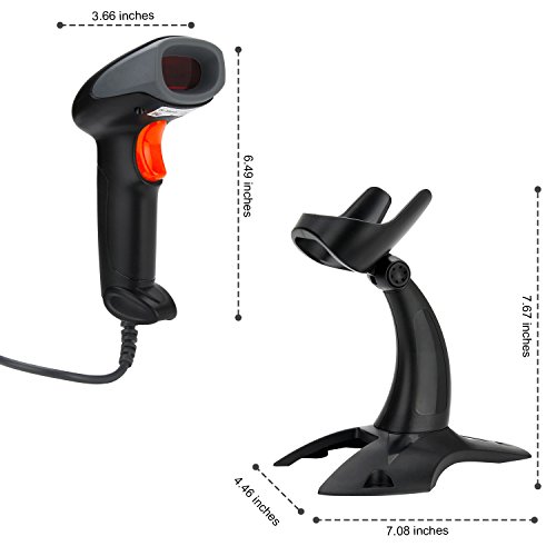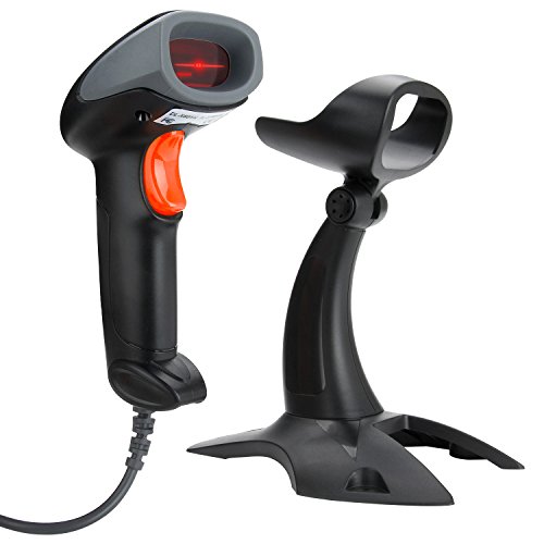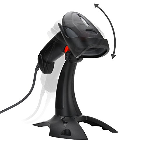 Vikeepro USB Barcode Scanner Wired Handheld Laser Bar-code Reader with Hands Free Adjustable Stand and 2m or 6ft straight cable(Black)