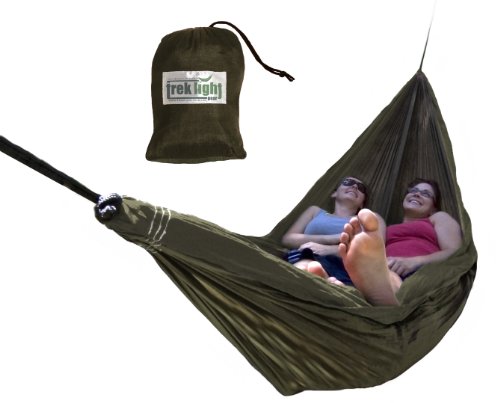 - Feature : Lightweight hammock weighs only 20oz (1lb 4oz), holds up to 400lbs! / Water Resistant and Quick Dry: Anti-mildew, anti-rot parachute nylon material sheds moisture and dries quickly in the sun / Engineered for maximum breathability and durability. Meticulously triple stitched along all seams. Doesn't get hot or sweaty in the sun. / Extra Wide Design: The Double Hammock is 6.5 feet wide which allows you to lie at an angle across (the most comfortable way to sleep in a hammock) or invite a friend for an enjoyable two-person hammock experience. / No-Flip Design: With no holes to get caught in and our No-Flip design, Trek Light hammocks offer a safe and enjoyable hammock experience for you and your family.