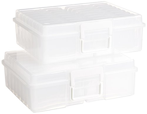 IRIS Extra Large 4" x 6" Photo and Embellishment Craft Keeper, 2 Pack, Clear with White Handle