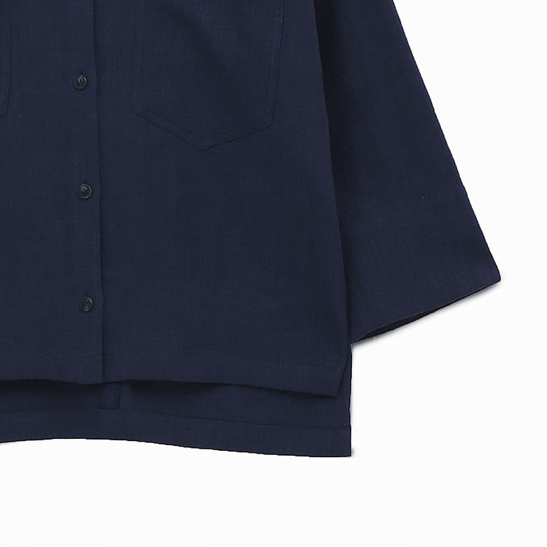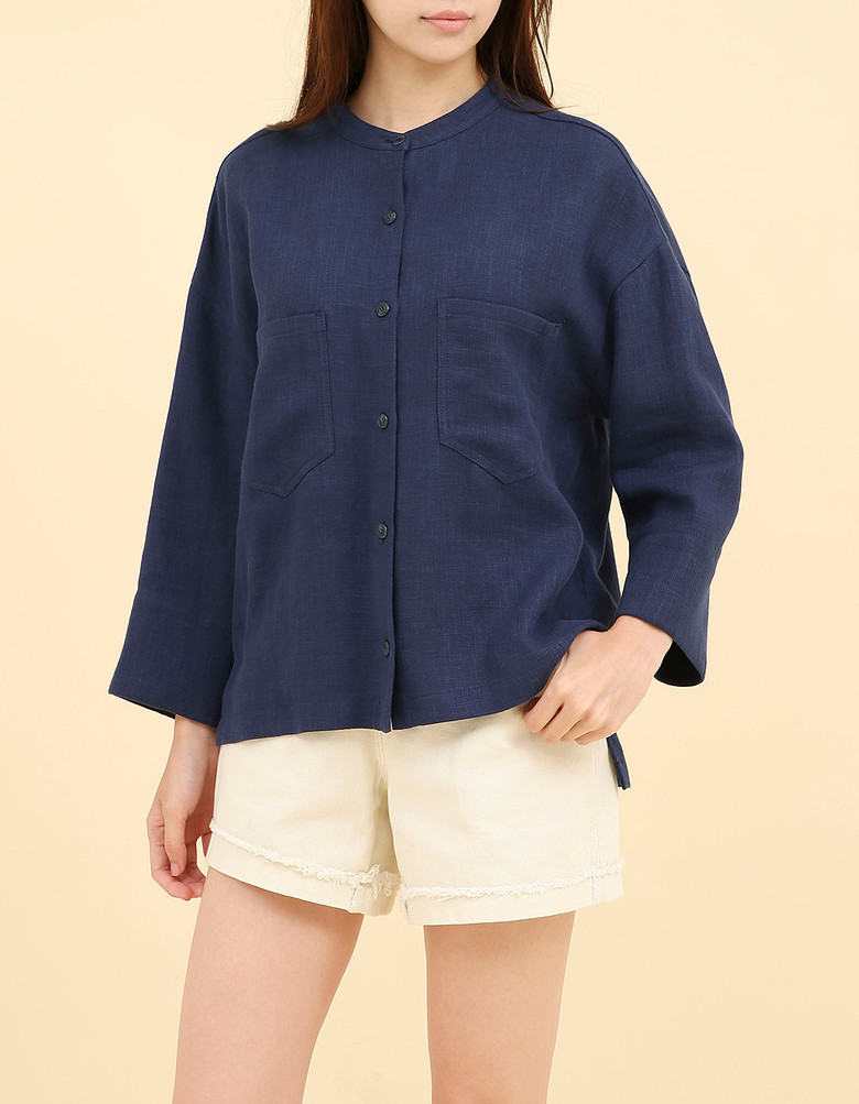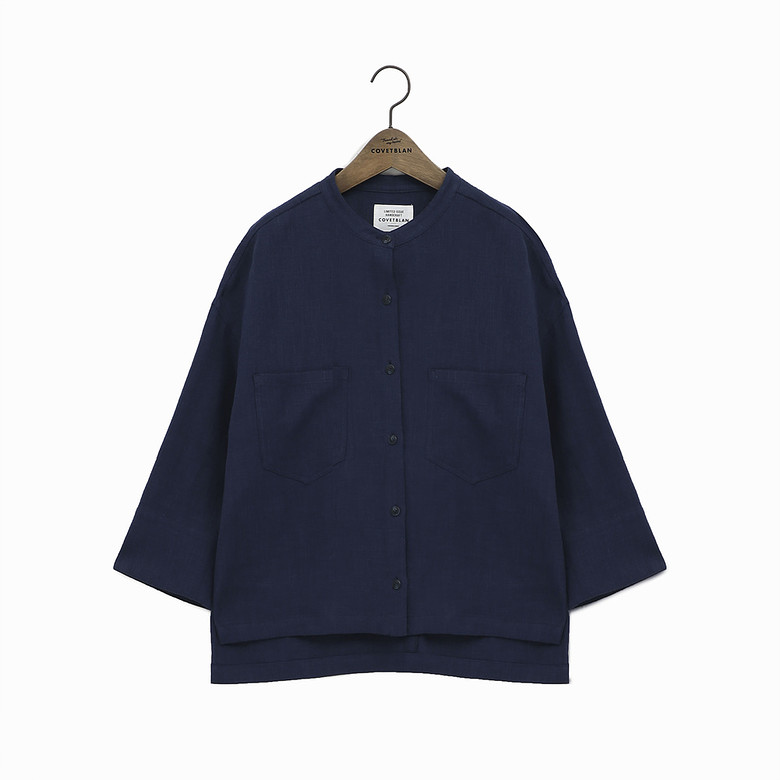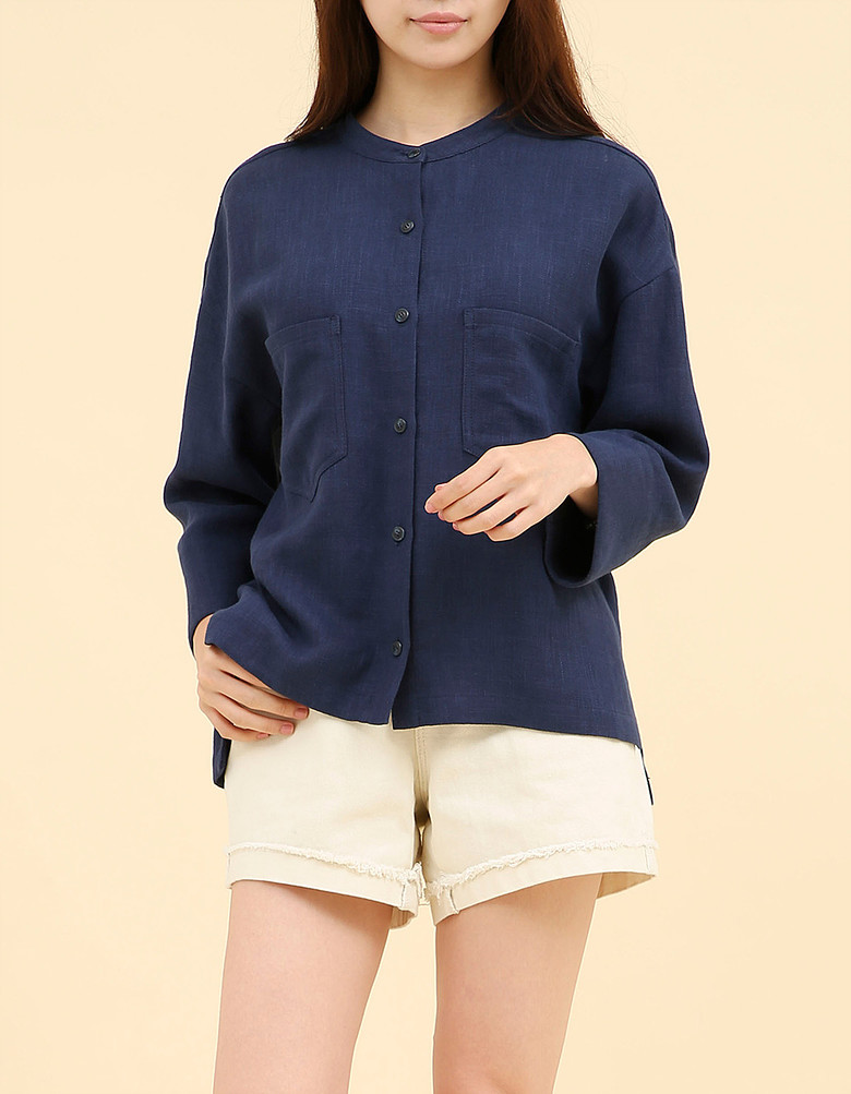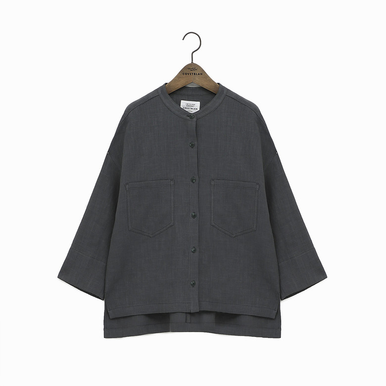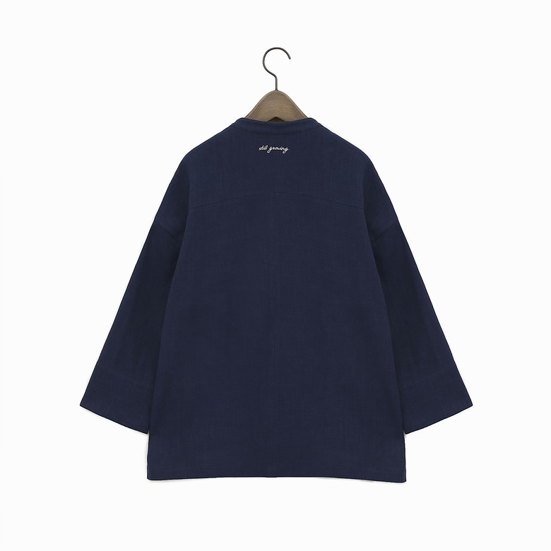 카라가 없는 라운드넥 마 자켓입니다
