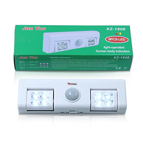 Motion Sensor Light with 8 LED 90° Rotation Battery Powered Stick-Anywhere Nightlight ,Portable Wireless Motion Activated Wardrobe Light for Bathroom,Closet (2-Pack)