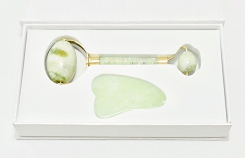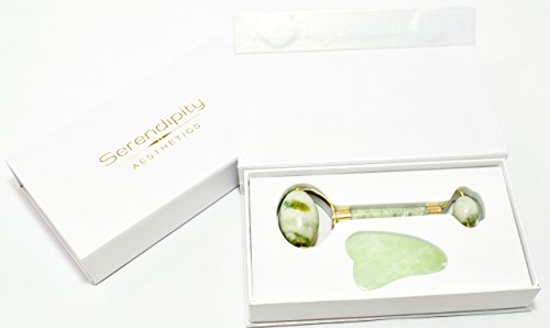 NEW Luxe Jade Roller and Gua Sha Facial Massage Set by Serendipity Aesthetics, Jade Roller for Face and Gua Sha Tool are 100% Natural Jade Stone
