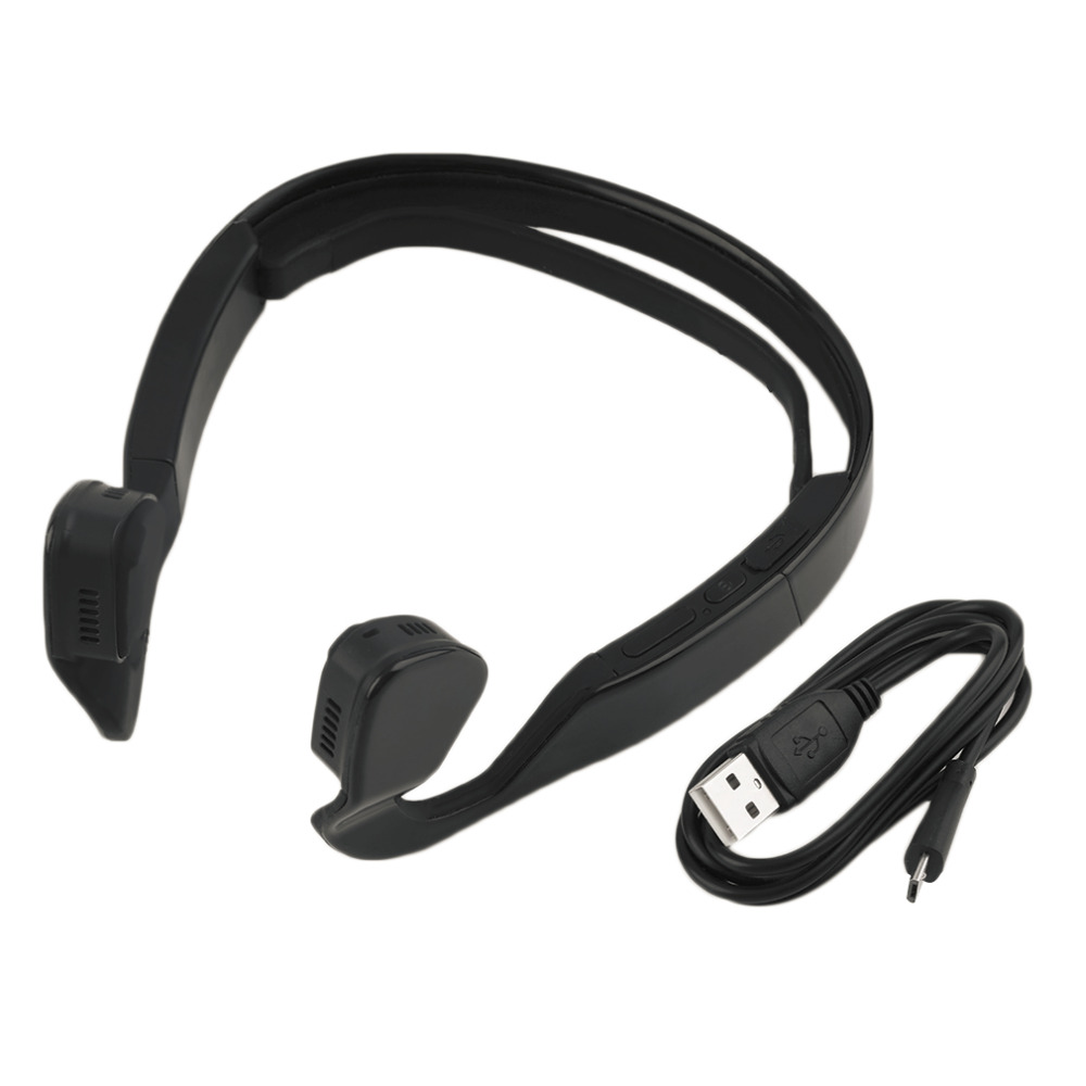 | Features: 100% Brand new and high quality! Headset uses the bone conductive speaker so the sound can pass though the skull directly to the auditory center which eliminates many steps of acoustic transmission. It can achieve clear sound reduction in a noisy environment so as to release the ear licate tone function. Stylish ergonomic / Unique design. Will provide better experience for listening than normal bluetooth headset U-shape design easier to fit your head. Suitable for people who jog run cycle etc. Specifications: Bluetooth version: 4.0 Color: Black Frequency range: 100Hz-18KHz Transmission range: 10 meters Transducer Sensitivity: 1003dB Microphone Sensitivity: -503dB Playback Time: up to 5 hours Standby Time: up to 15 days Fully Charging Time: 1.8 hours Package includes: 1* Headphone 1* USB cable |