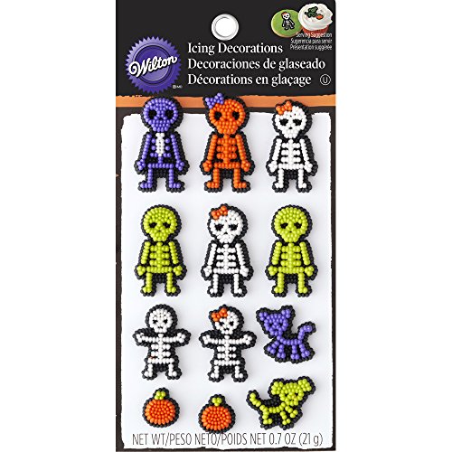 - Bright purple, orange, white and green edible icing decorations add a “pop” of color