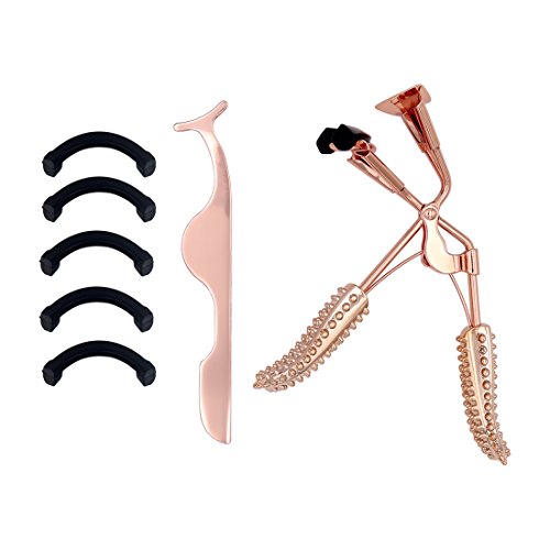 Leryeu Eyelash Curler Premium Electroplate Eyelash Professional Makeup Tool With 5 Replacement Silicone Refill Pads and False Eyelashes Applicator-Used to Get...