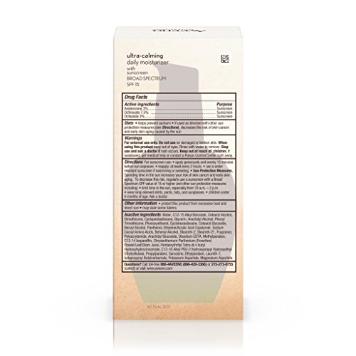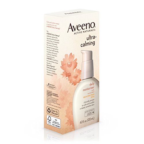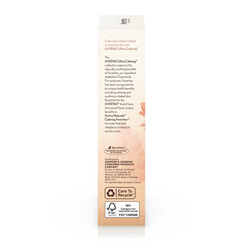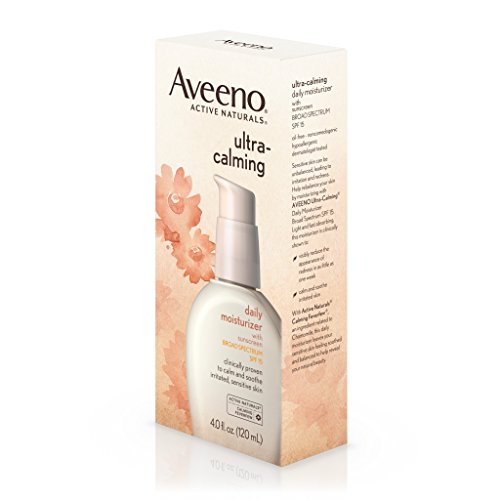Aveeno Ultra-Calming Daily Moisturizer with Broad Spectrum SPF 15, is clinically proven to visibly reduce redness and soothe irritated skin. This facial moisturizer is specially formulated for dry, sensitive skin prone to irritation. Shown to reduce redness and irritation in as little as one week, this formula contains Active Naturals Calming Feverfew to help calm and soothe irritated or sensitive skin. This moisturizer has broad spectrum SPF 15 to help protect your skin from harmful UVA/UVB rays, and it's oil-free, non-comedogenic, and hypoallergenic.Feature
