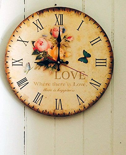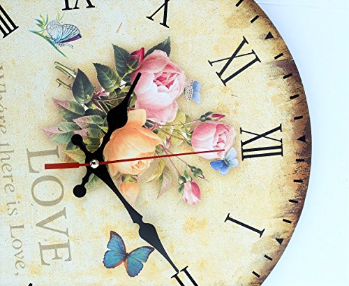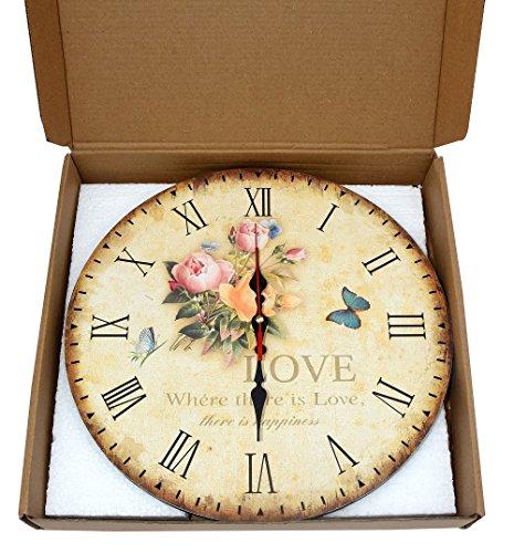 -. Title : LeBeauTemps Vintage 12" Silent Round Wall Clock, Home Decor Wooden Rose Clock