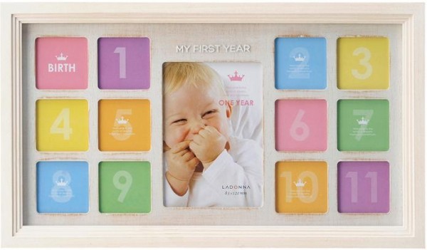 | 木のぬくもりがやさしい、新しい「12ヶ月ベビーフレーム」。 |