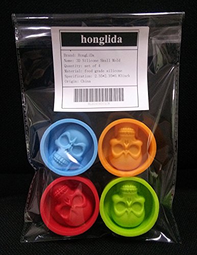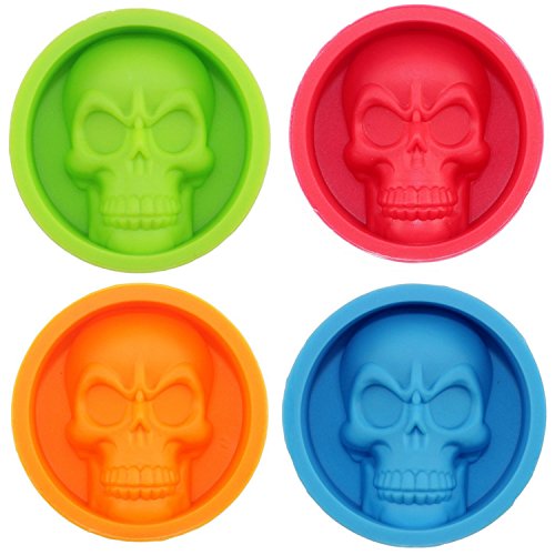 HONGLIDA Halloween Skeleton Skull Mold Silicone Candy Chocolate Molds Muffin Cups 4 Colors 4 Pack