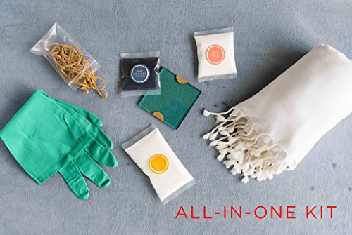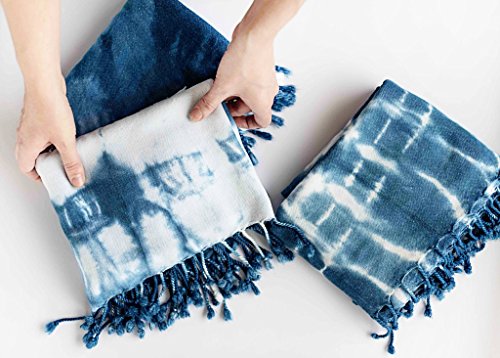 - INCLUDES: One hand loomed 100% cotton, 39 x 70 inch Turkish towel; One vat’s worth of pre-measured indigo, thiox and soda ash (chemistry degree not required); (2) Sturdy, reusable acrylic squares that won’t warp like their wood alternatives; Aw, snap! A bunch of rubber bands; Sturdy household gloves that’ll keep those hands and fingers stain-free;