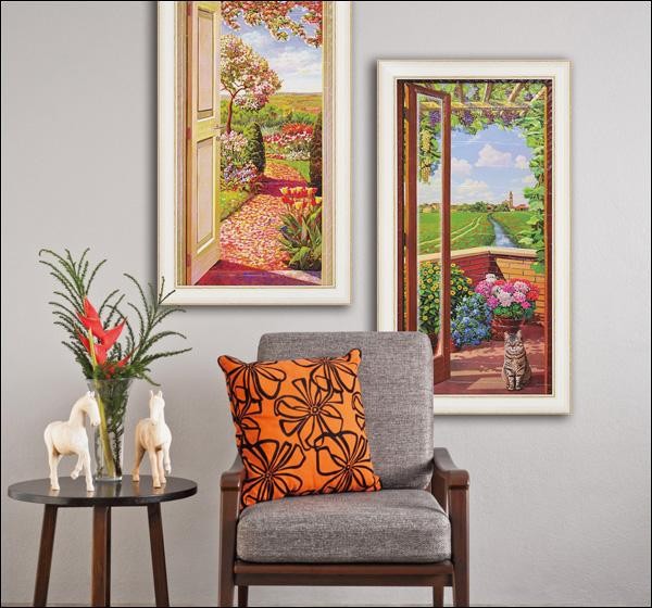 | イタリア男性作家「アンドレア デル ミッシャー」のアートフレームです。まるで窓から外を見ているような気分になれるアートは、いつまでも眺めていたくなります。 |