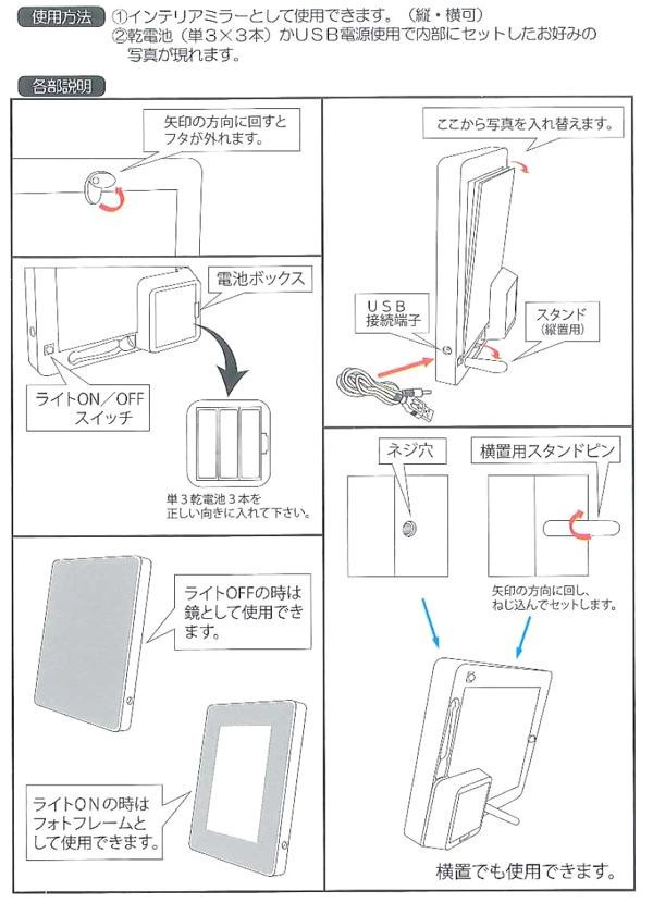 普段はミラーとしてお使いいただけますが、スイッチを入れるとライトが点灯してフォトフレームに早変わりするインテリアです。 |
