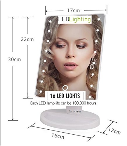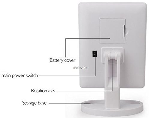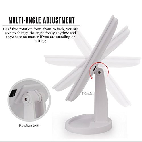 PrimePac- Best Price Free Standing Makeup Mirror with LED Lights. This Cosmetic Mirror is a must have for your Vanity, Bathroom, Desktop, Table. Great Lighted Travel Mirror, Compact and Illuminating.