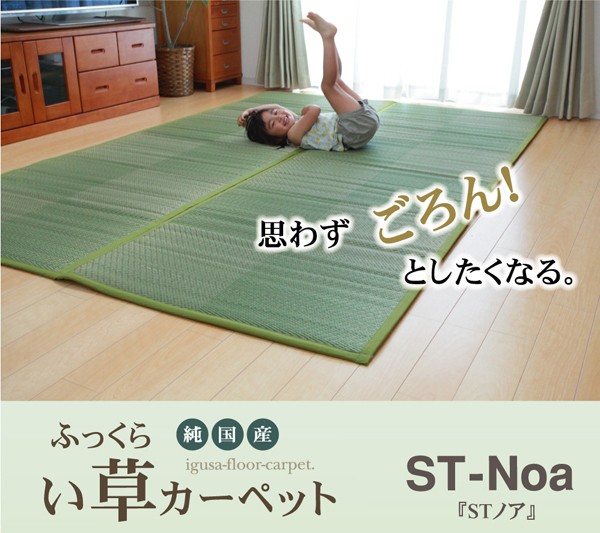 【商品名】純国産 い草花ござ 『STノア』 グリーン 江戸間2畳(約174×174cm)(裏:ソフトテック15mm)