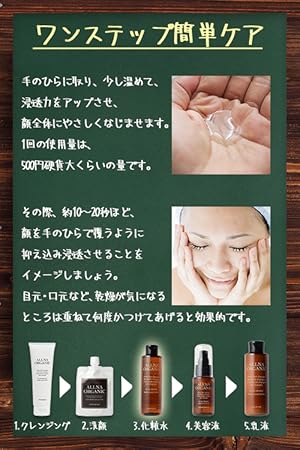 ・手のひらに取り、少し温めて、浸透力をアップさせ、顔全体にやさしくなじませます。1日の使用量は、500円硬貨大くらいの量です。
