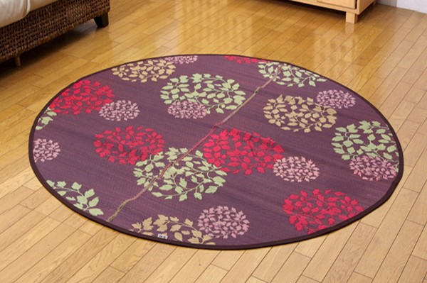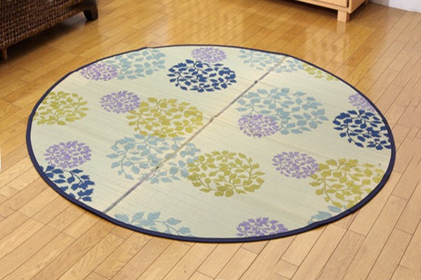 【商品名】純国産 花柄 い草カーペット 『DXハナガラ』 ブルー 176丸cm