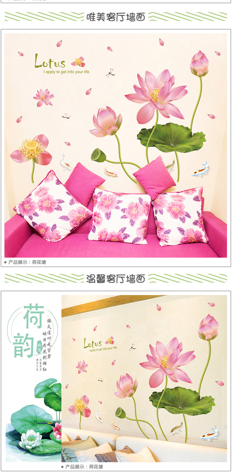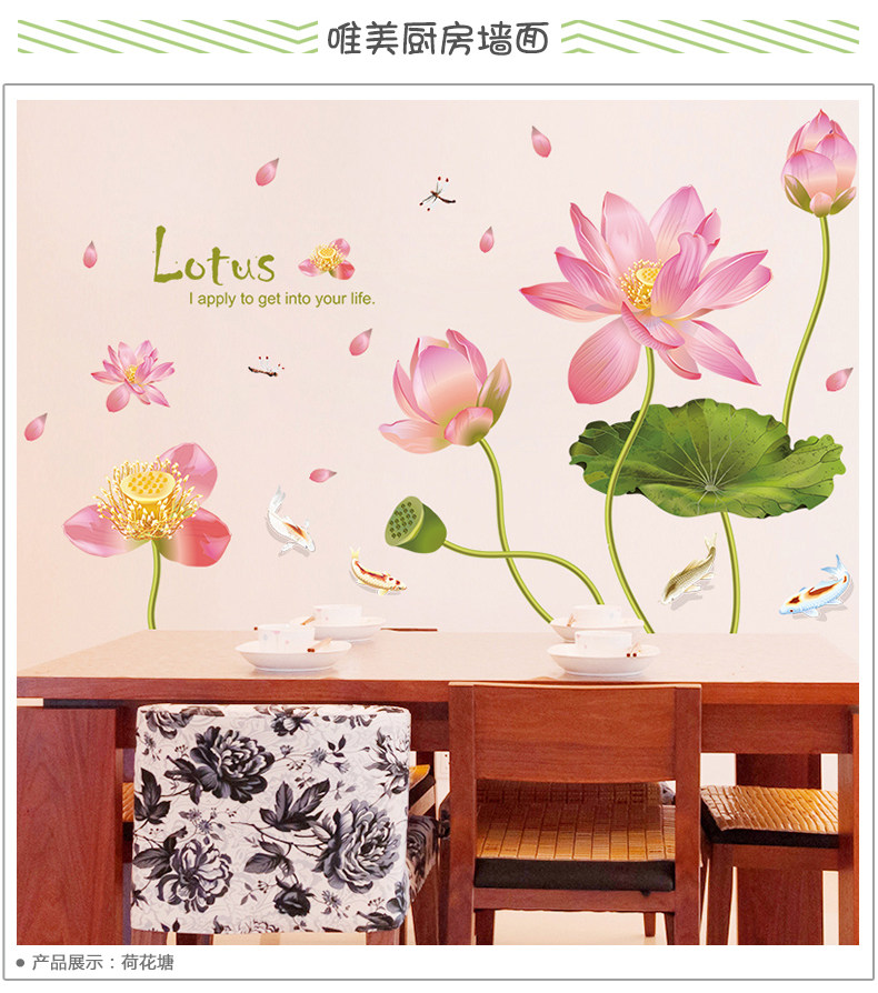 中国风荷花墙贴纸卧室温馨客厅沙发电视背景墙壁装饰贴画墙纸自粘