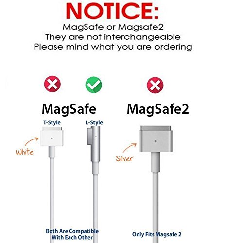 Macbook Air Charger, AC 45W Magnetic Magsafe (L-tip) Replacement Connector Power Adapter for Macbook Air 11 inch and 13 inch with “L”style before 2011