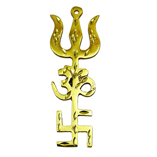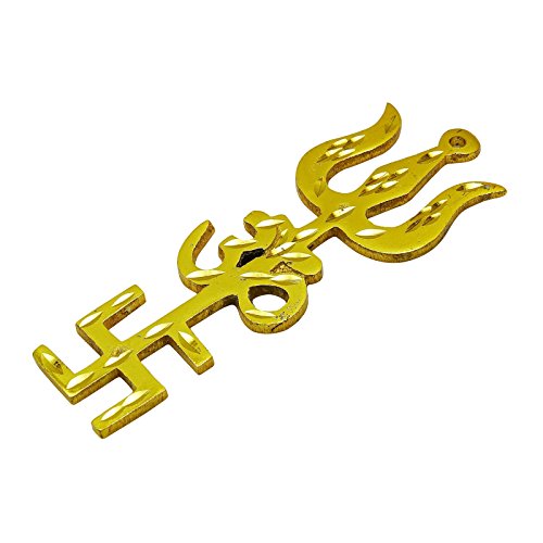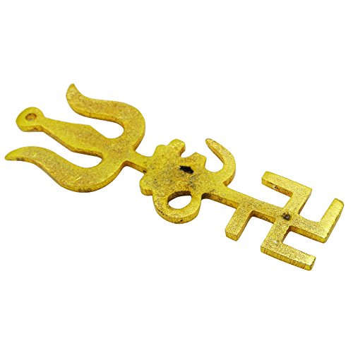 Studio : ibaexports Publisher : ibaexports Binding : Kitchen Product Description * Beautiful Brass Trishul Om Swastik Design Car Hanging. * Material: Brass. * Size: 3.7" L x 1.3" W in inches. * Weight: 30 Grams. * Color: Gold. * Made In India. * This Tri-Energy symbol purifies the whole atmosphere. It is helpful to remove all faults. In India the three most auspicious signs are those of "SWASTIK OM and TRISHUL ".* These can be used in house office or professional place i.e. shop factory briefcase etc.* We can place it at worship place but the best place is to place above the mail one from inside and one from outside for protection of your house.* If all these three signs are displayed together on the outside of main it is supposed to be very lucky and also protects the people living inside the house from all types of evil eyes.This is an auspicious sign to place on a wall or the entrance of your home and make it thrice-blessed. * The `trishul` is a symbol of protection that guards your home and family against misfortune. `Om` is believed to be the seed sound of the cosmos and creates positive vibrations in and around your abode. * The `swastik` is a traditional sign that stands for a warm welcome to all your guests.