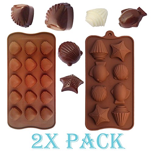 2 Pack Combo Seashell Sea shell Fish Starfish Cool Ice Cube Chocolate Soap Tray Mold Silicone Party Maker (SHIPS FROM USA)