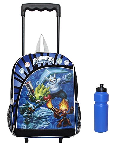 -. Binding : Toy -. EAN : 8019606604453 -. Feature : Skylander rolling backpack. / Backpack size: 16'' x 12'' x 5'' wheels. / Handle hight 30" *4-6 years old. / Bonus water bottle *the color of the bottle may change depending on the inventory. -. IsAdultProduct : 0 -. Label : always on roll -. LegalDisclaimer : The color of the bottle may change depending on the inventory -. Manufacturer : always on roll -. MPN : 01 -. PartNumber : 01 -. ProductGroup : Toy -. ProductTypeName : TOYS_AND_GAMES -. Publisher : always on roll -. Studio : always on roll -. Title : New Slylander Large Rolling Backpack 16"