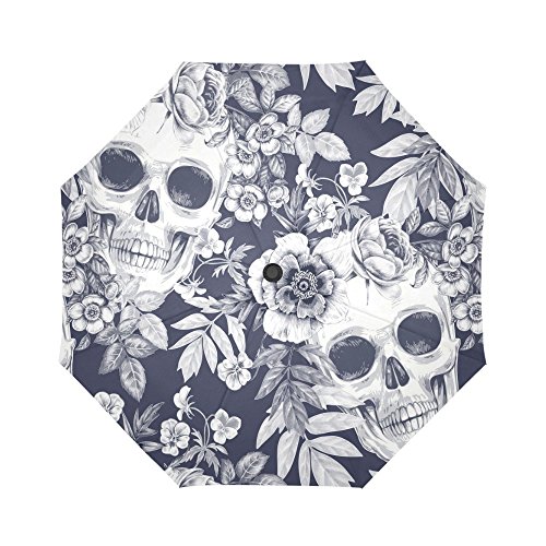 -. Title : your-fantasia Retro Flower Sugar Skull Auto Open Close Folding Waterproof Fabric Travel Umbrella