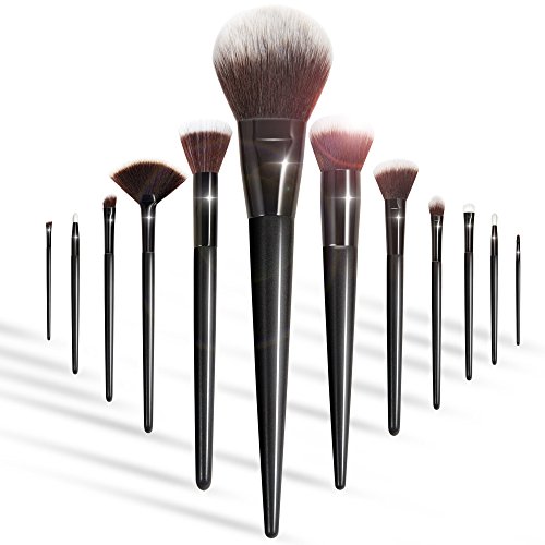 Gemtotal Professional Premium Blending Kabuki Makeup Brushes Set for Women with Organizer Bag, 12Pcs, Black