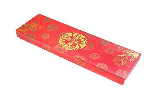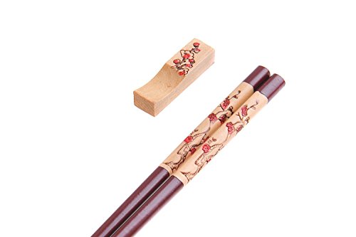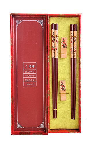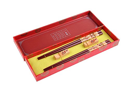 Abacus Asiatica: Elegant chopstick set in a decorative box, with "Plum Blossom" carved-wood chopsticks and chopstick-rests (2 pairs of chopsticks, 2 rests), Mod. CB-S2-R-H03 (US)