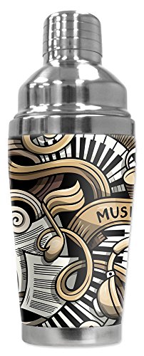 -. Brand : Mugzie -. Color : Multicolor -. Feature : 20 Oz Stainless Steel Cocktail Shaker covered with water-proof, neoprene wetsuit material. No more cold, wet hands when shaking up your favorite cocktail. / Hand-sewn fabric cover is made from 1/4 inch closed-cell neoprene that is covered with soft, water-proof polyester fabric. / Stain-resistant cover is printed in hi-resolution and has full-wrap coverage. Leak and spill proof lid. Non-skid bottom. / Cushioned cover affords a secure grip and eliminates condensation and sweating. Bottom counter-weighted bottom provides stability. / Patented. Truly unique. Over 750 different designs. Made in the USA. FREE SHIPPING. -. Label : Art Plates -. Manufacturer : Art Plates -. Model : 8588-SHAMAX -. MPN : 8588-SHAMAX -. PackageQuantity : 1 -. PartNumber : 8588-SHAMAX -. ProductGroup : Kitchen -. ProductTypeName : KITCHEN -. Publisher : Art Plates -. Size : 16 Ounce -. Studio : Art Plates -. Title : Mugzie 20 Ounce Stainless Steel Cocktail Shaker with Insulated Wetsuit Cover - Musical Background