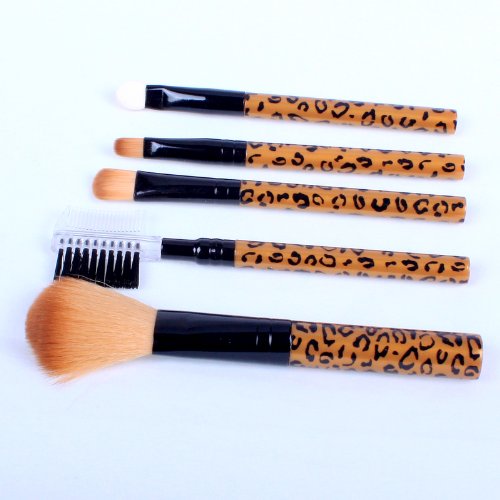 5 Pcs Sexy Leopard Stripes Cosmetic Makeup Tool Brush Kit Travel Set
