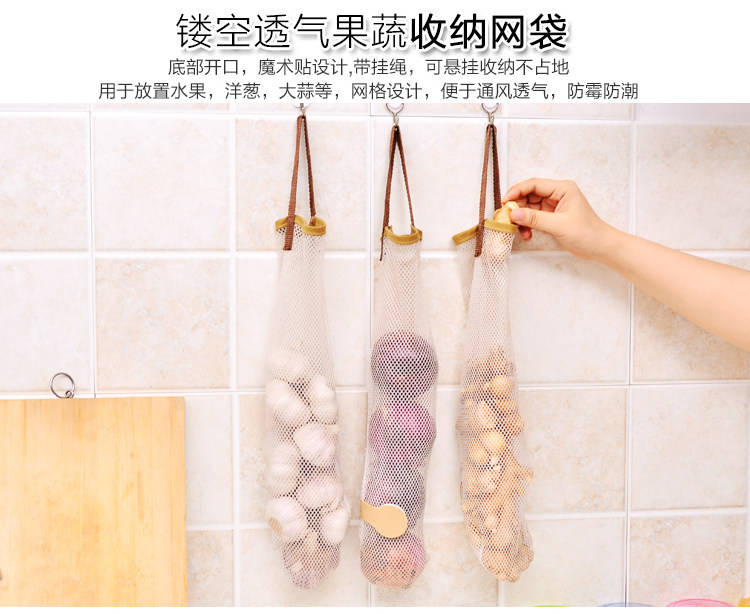 厨房可挂式果蔬收纳袋手提便携镂空透气网袋门后墙上大蒜洋葱挂袋
