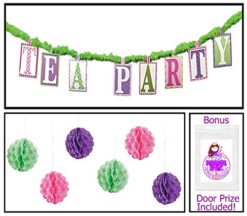 -. Binding : Toy -. EAN : 0798304283488 -. Feature : Adorable Tea Party Banner with 6 Matching Tissue Balls / The "Tea Party" Banner is ComP.R.Ised of 5 x 7 inch Cardboard Letters Spelling "TEA PARTY" and Hang off of a 72 inch Green Marabou Garland. / The 6 Matching Tissue Balls are each each 7.75 inches in Diameter and Colors Include Pink, Purple, and Mint Green. / Simple Assembly is Required. / 1 Super Secret SurP.R.Ise Sack (Trademark Pending). This fun gift can be used as a door P.R.Ize or as a gift for the winner of a party game. The Super Secret SurP.R.Ise Sack comes in a resealable pouch and contains a unique "Tea Party" Favor. -. Label : FX -. Manufacturer : FX -. MPN : LYSB00IL0FK5G-TOYS -. PackageQuantity : 1 -. PartNumber : LYSB00IL0FK5G-TOYS -. ProductGroup : Toy -. ProductTypeName : TOYS_AND_GAMES -. Publisher : FX -. Studio : FX -. Title : Tea Party Banner with 6 Matching Tissue Balls - Girl Party Decoration Supplies -. UPC : 798304283488