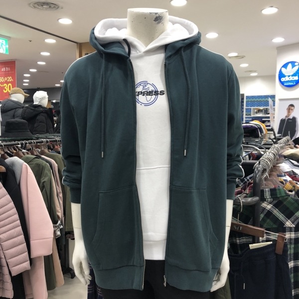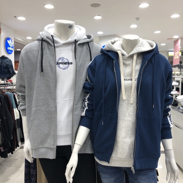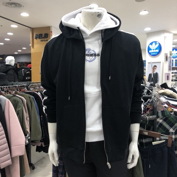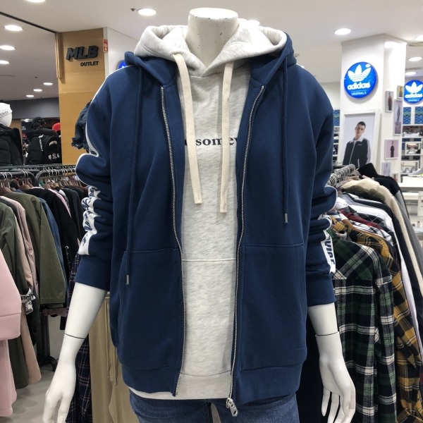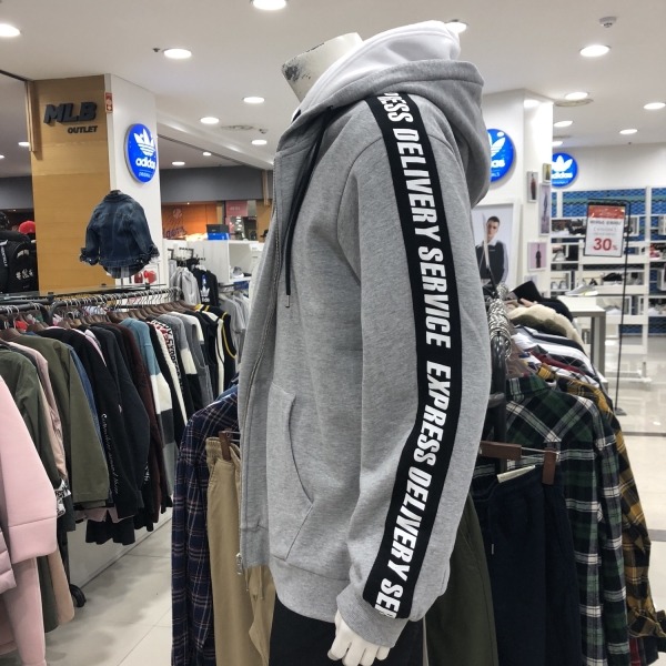 유니)소매라인그래픽 기모쭈리 후드집업