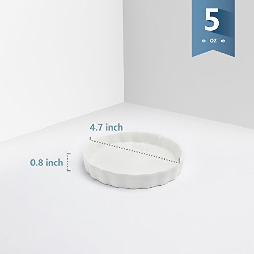 Sweese 5103 Porcelain Ramekins Round Shape - 5 Ounce for Creme Brulee - Set of 6, 4.8 x 0.8 Inch, White