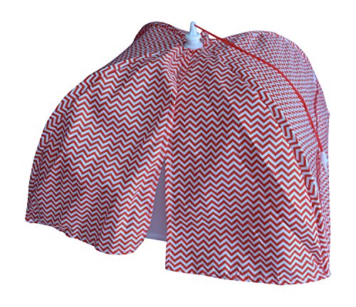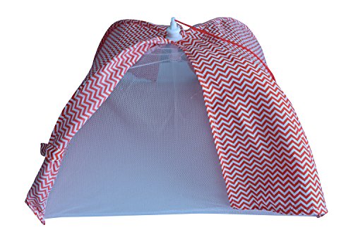 Food Cover Umbrella Pop up Large Mesh Tents, 18 Inch Square, Collapsible (Red Chevron)