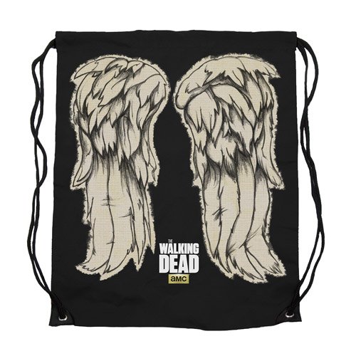 -. Feature : Carry your stuff around in AMC's The Walking Dead style! The Walking Dead Rick Grimes Wings Cinch Bag is made from durable polyester and displays an image of the iconic wings worn on the jacket by fan-favorite character, Daryl Dixon. Bag features reinforced bottom PVC corners with grommet for polyester cording straps. Intended for light use. Measures 17-inches tall x 13 2/4-inches wide.