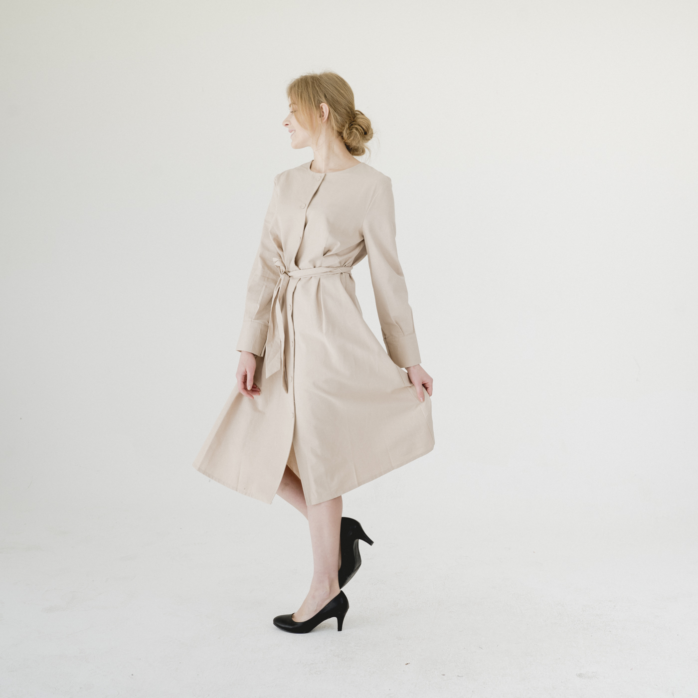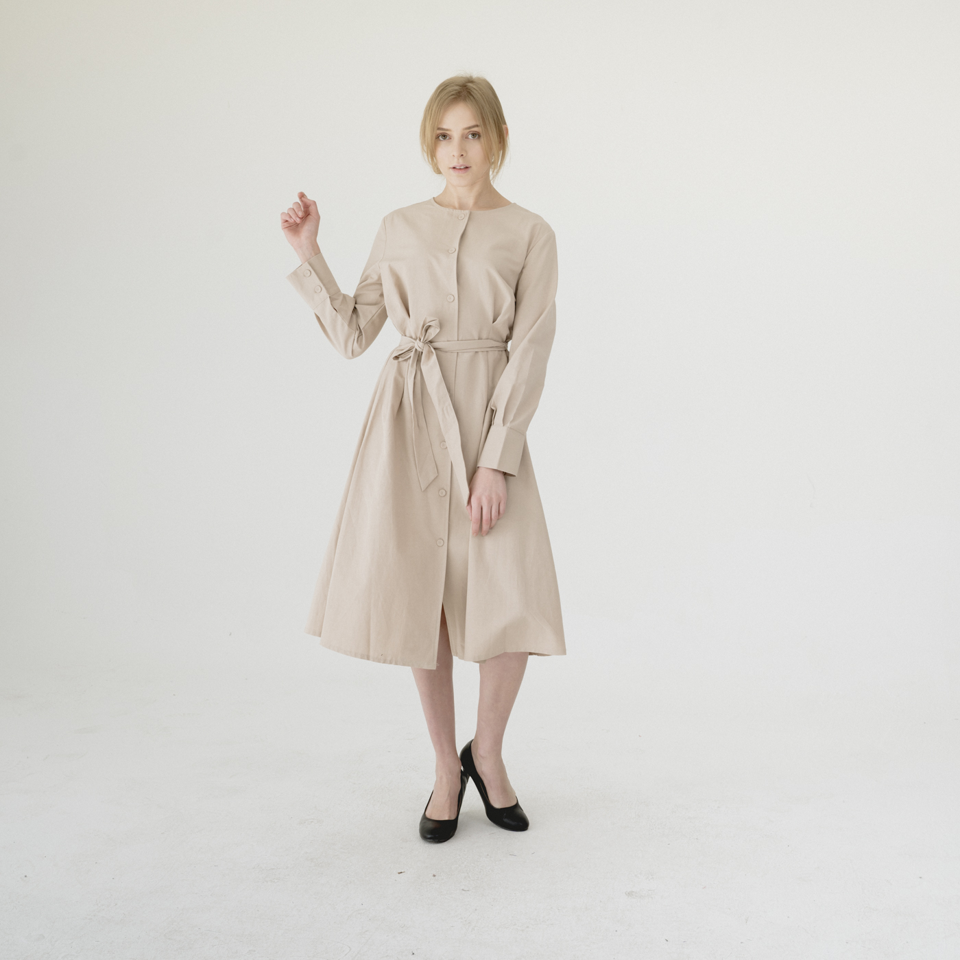 우아하고 모던한 스타일의 원피스겸 아우터로도 코디가 가능한 아이템 패션 입니다.