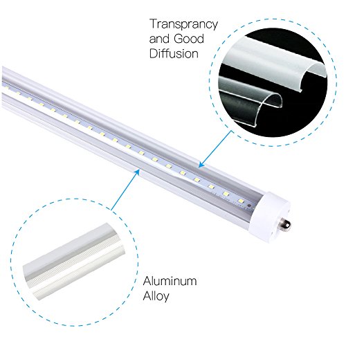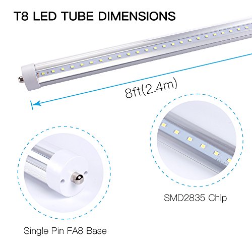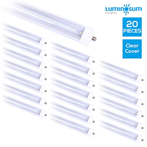 LUMINOSUM, T8 LED Tube Light 8ft 45W, Single Pin FA8 Base, Clear Cover, Cool White 6000k, Fluorescent Tube Replacement, 20-Pack