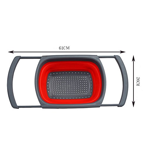 ❤ RETRACTABLE HANDLE: This colander can stand over the sink and hold itself with its sturdy expandable arms. DRAIN QUICKLY-The holes on the colander are the perfect size they are large enough to drain quickly, but small enough for things to not fall threw.