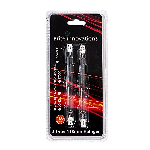Double Ended J Type Halogen Bulbs - 118mm, 150 Watts, 120 Volts, 2700K Warm White Light – Dimmable, Energy Saver, Long Life – 6 Pack – by Brite Innovations