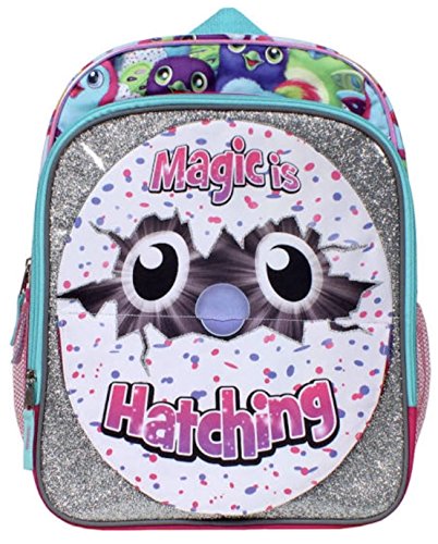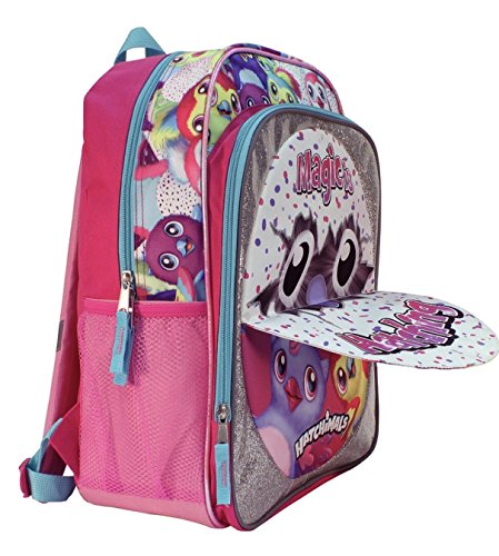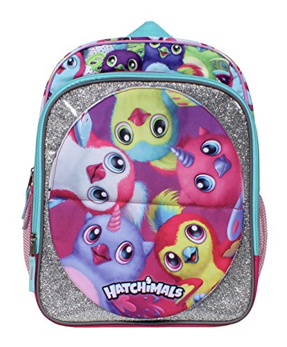 -. Brand : Accessory Innovations -. Color : pink, purple, multi -. Department : girls -. EAN : 0650045967631 -. Feature : Hatchimals full size backpack for kids / Flip up front panel with two different character prints / Main zipper compartment pocket for children's books or toys / Mesh side pockets for water bottle and small supplies / Great gift for kids school or travel -. Model : B17HC35418-TU0 -. PackageQuantity : 1 -. ProductGroup : Apparel -. ProductTypeName : LUGGAGE -. Size : 16-inch -. Title : Hatchimals Magic Is Hatching Full Size Backpack -. UPC : 650045967631